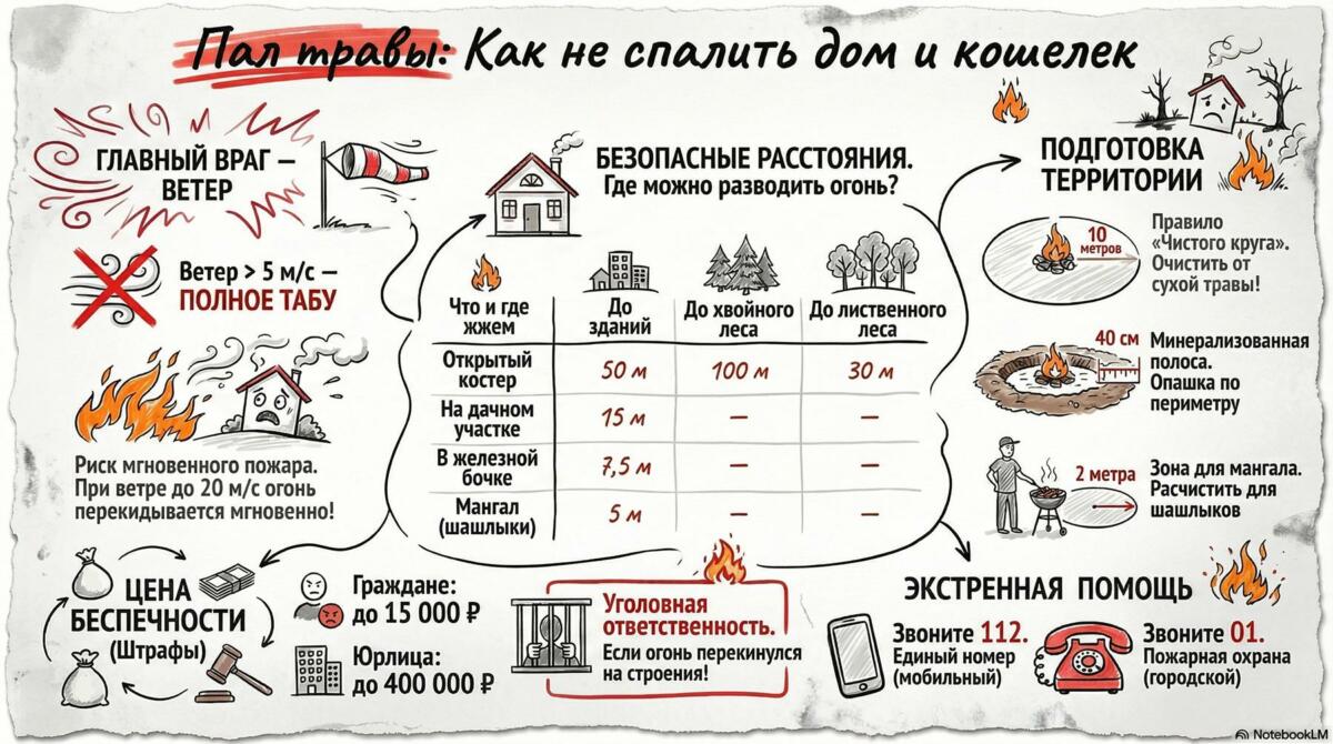 На следующей неделе в Брянске ожидается до +17 градусов — а значит, начинается сезон не только субботников, но и первых пикников. МЧС воспользовалось моментом, чтобы напомнить: и костёр на участке, и мангал на природе требуют соблюдения чётких правил.