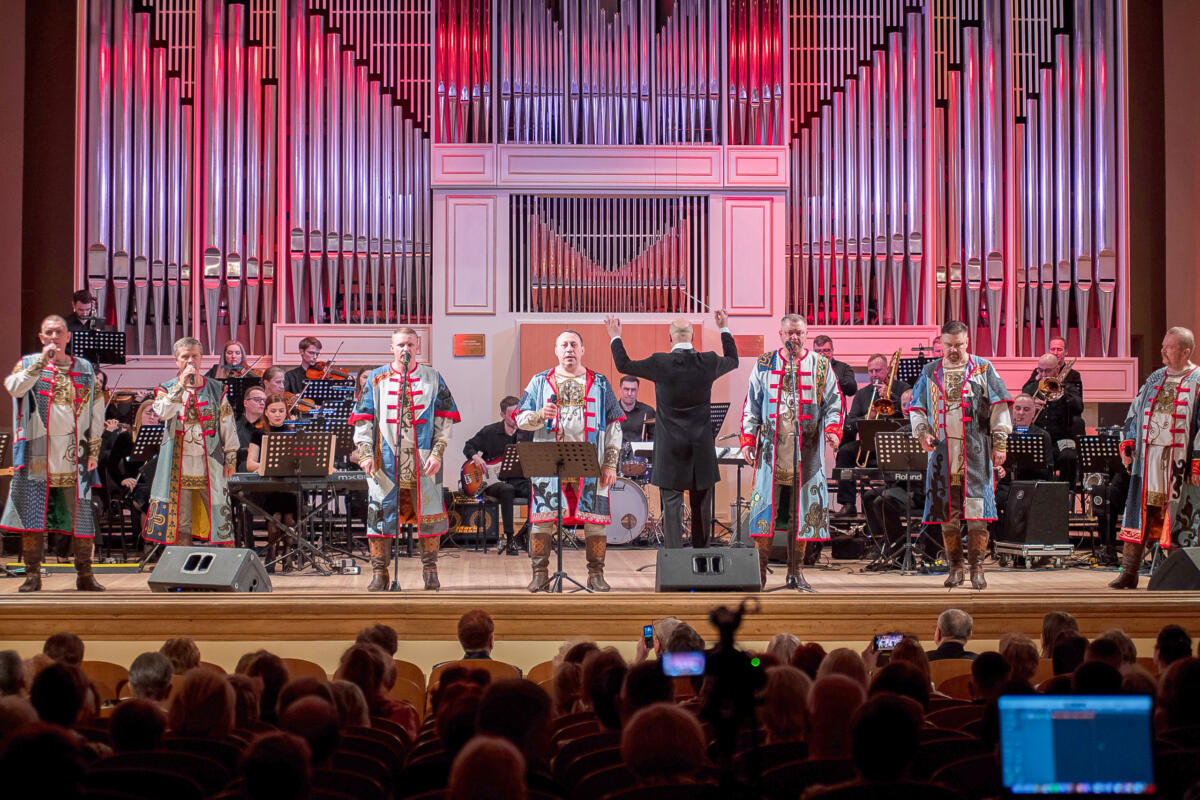 В исполнении солистов и оркестра прозвучали легендарные песни о нашей стране.
